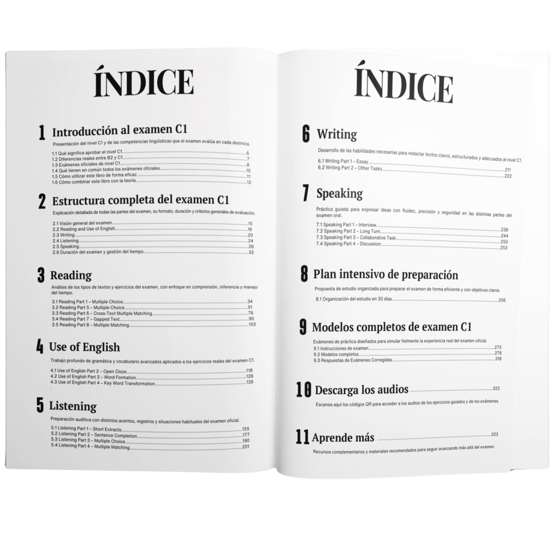 Este ebook está diseñado para que prepares el examen C1 de forma estructurada y consciente, entendiendo en todo momento qué te piden y cómo responder.
